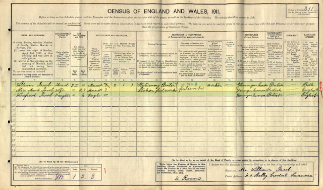 William, 32, is next recorded on the 1911 Census, living at