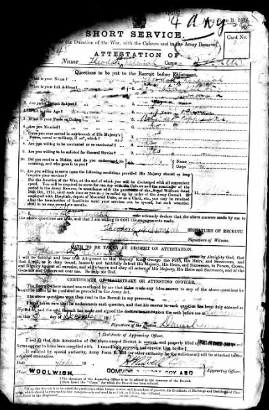 Theodore enlisted in 1915 and served with the Army Service
