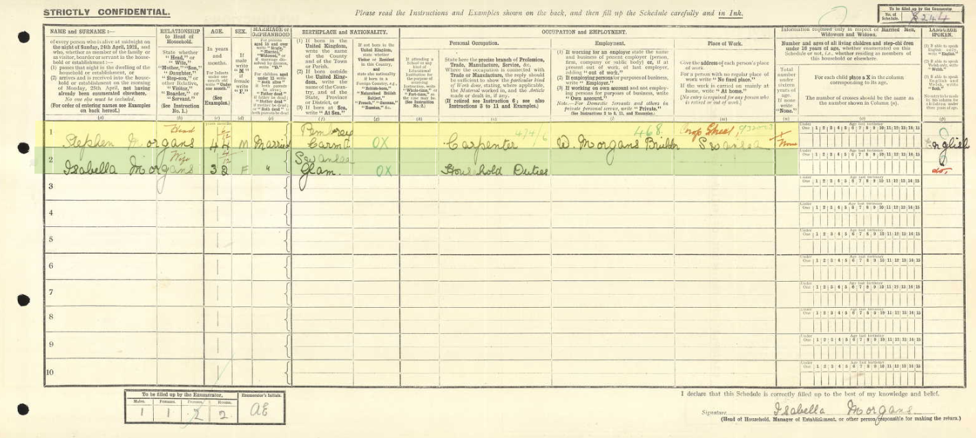 The 1921 records that Stephen and Isabella still live at 32